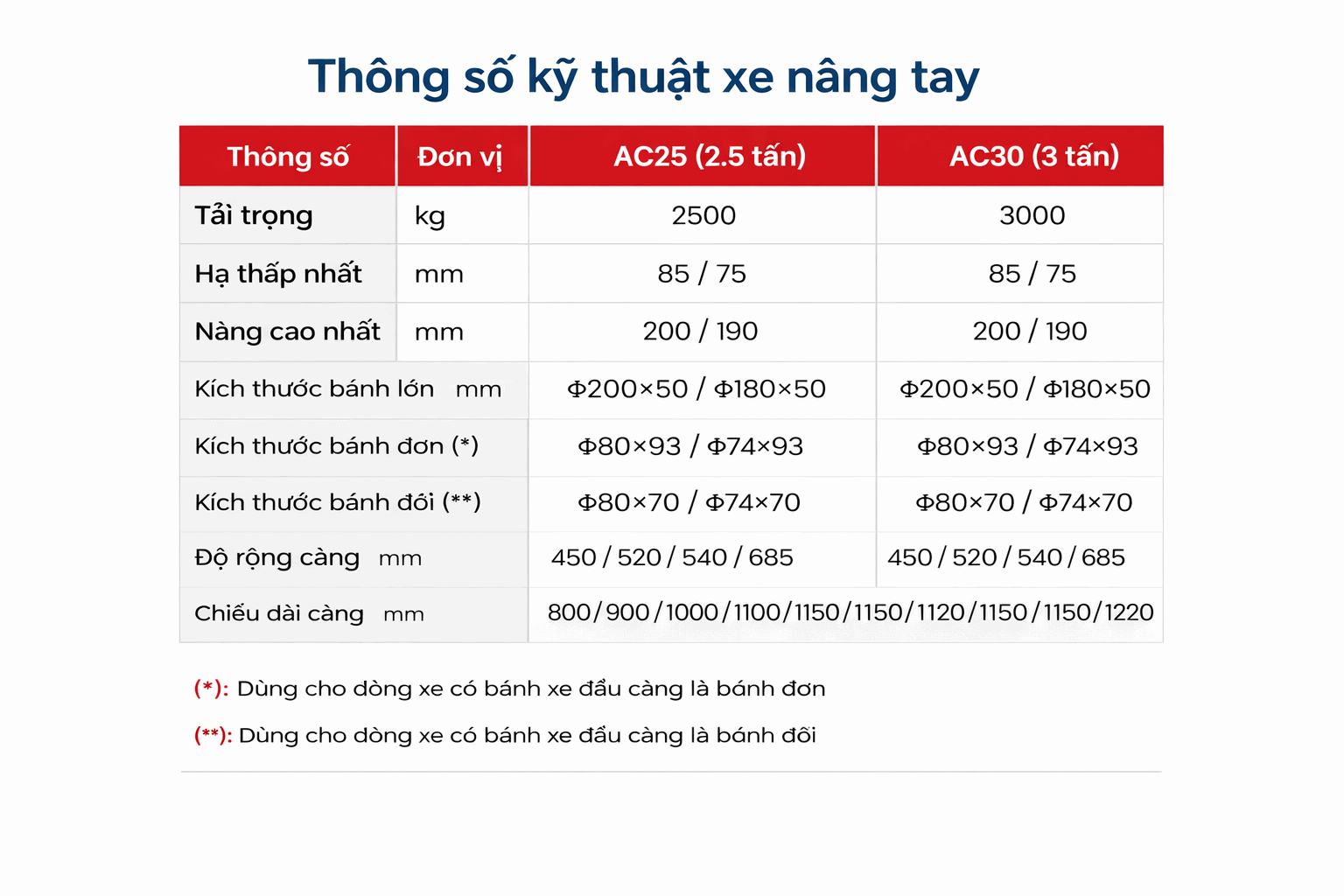 Nitto cung cấp nhiều mẫu xe nâng tay với các thông số kỹ thuật đa dạng để đáp ứng nhu cầu khác nhau của khách hàng. Một số dòng xe nâng tay Nitto phổ biến bao gồm: